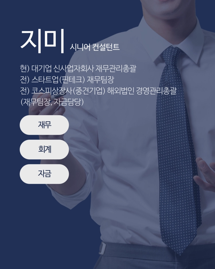 저는 현재 대기업 내 자회사 재무관리를 총괄하고 있으며, 주재원 근무 경험, 스타트업 투자유치 및 자금조달까지 폭 넓은 경험을 바탕으로 실무 중심 조언을 제공해드리겠습니다.